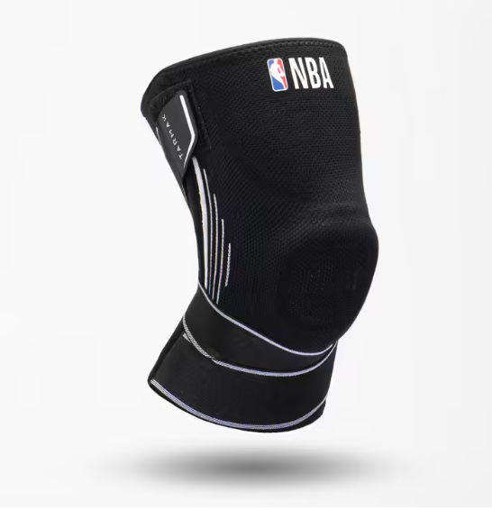 Genunchiera MID 500 NBA TARMAK este realizată cu inel în jurul rotulei, benzi și curele de compresie. Se pune ușor și se ajustează presiunea în funcție de nevoile utilizatorului. Materialul de compresie se mulează bine pe forma genunchiului, fără a strânge. Dispozitivul a fost creat pentru reluarea activităților sportive după o entorsă ușoară a genunchiului. Articulația este susținută cu ajutorul benzilor elastic și a inelului rotulian.