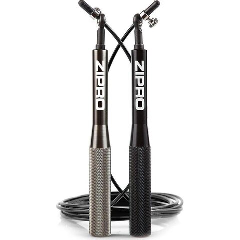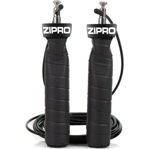 Coarda de sărit din aluminiu Zipro are un cablu de oțel învelit în PVC, rezistent la abraziune. De asemenea, prezintă și rezistență scăzută la aer, ceea ce duce la mișcări rapide. Rulmenții atașați de mânere elimină răsucirea frânghiei și asigură o mișcare lină.